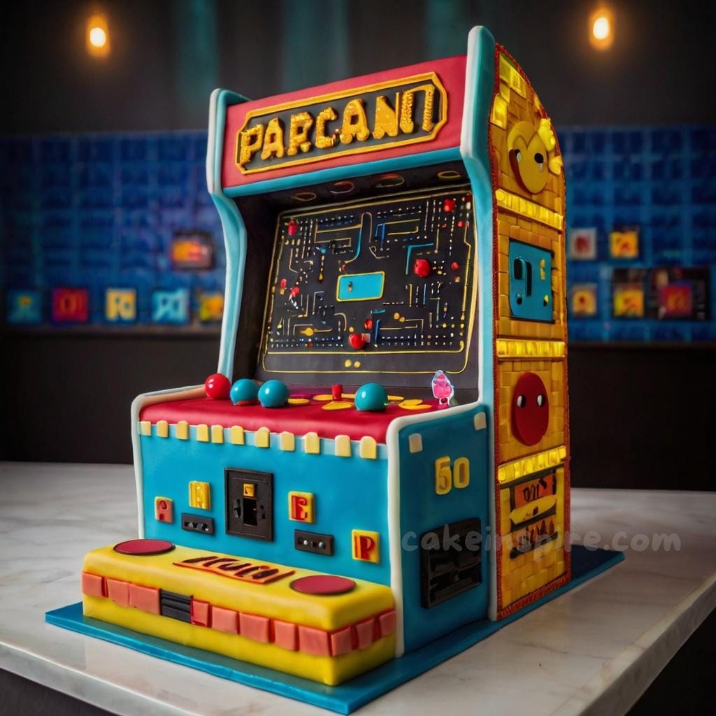 - Shape the cake like a retro arcade machine.