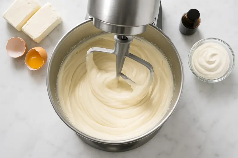 Room temperature ingredients are crucial. Cold cream cheese will create lumps in your cheesecake layer. Let all dairy sit out for about an hour before starting.