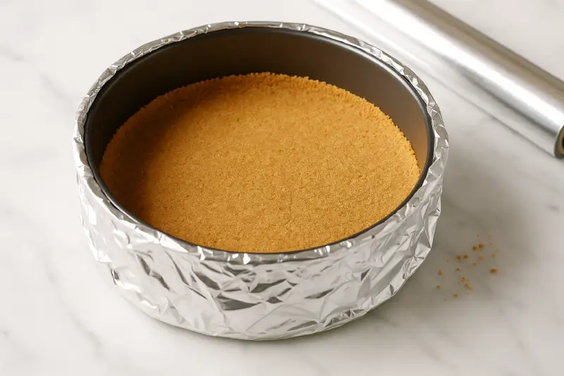 1. Preheat your oven to 325°F (163°C). Wrap the outside of a 9-inch springform pan with two layers of heavy-duty aluminum foil to make it waterproof.