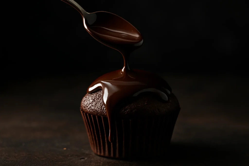 Spoon or carefully pour the ganache over the top of each filled cupcake, letting it drip down the sides naturally for a rustic look, or use the back of a spoon to spread it evenly to the edges for a neater appearance. If you’re adding garnishes like chocolate-covered coffee beans or chocolate curls, add them now before the ganache sets.