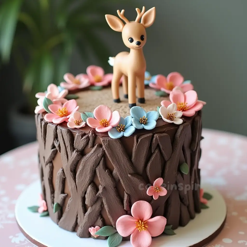 Rustic and woodland-themed cakes bring a touch of nature to your gender reveal. Incorporate elements like edible flowers, tree bark designs, or fresh greenery to make the cake stand out.
